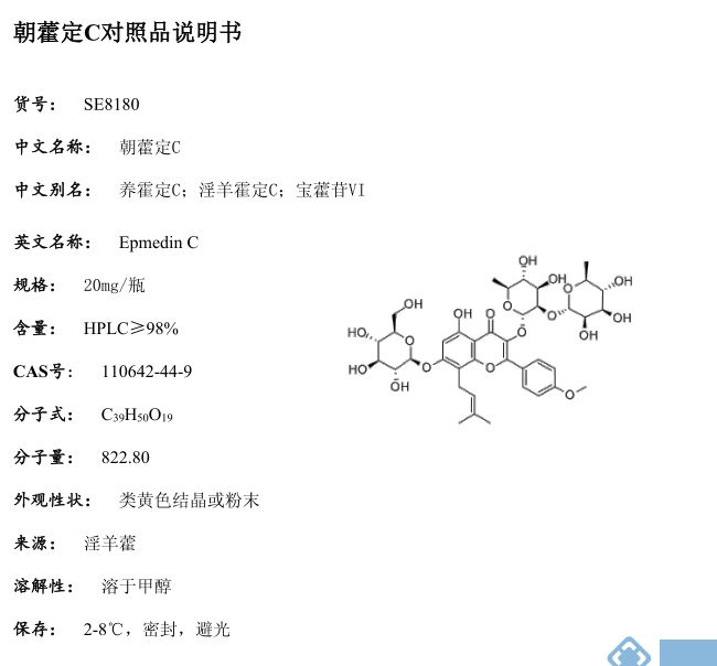 产品名称: 朝藿定C 标准品